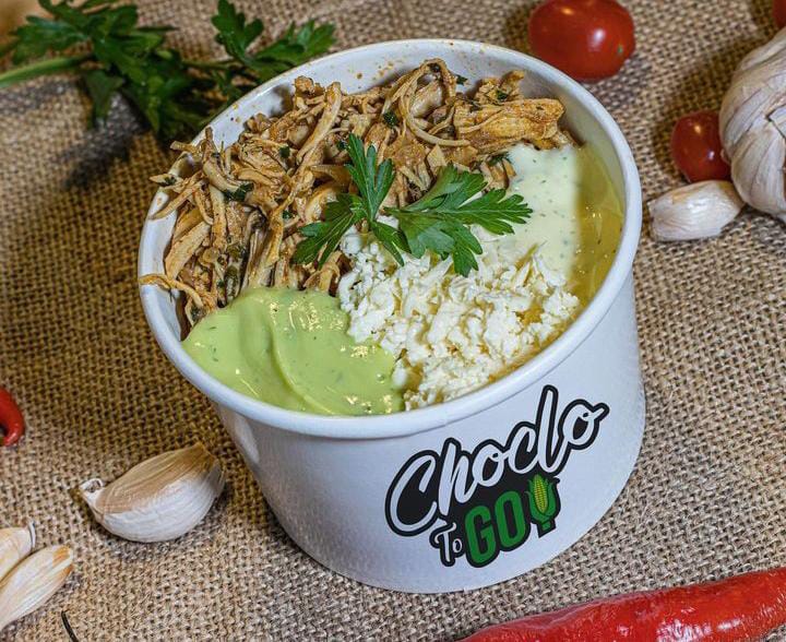 ChocloPechuga desmechadaMayonesa de la casaQueso RalladoGuacamole