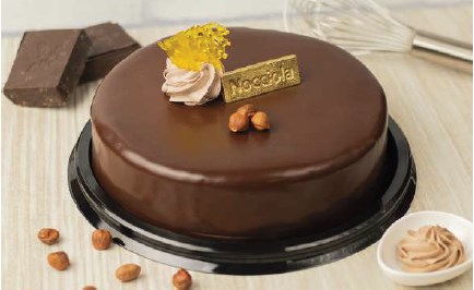 Bizcocho de chocolate, hidratada en almíbar de nutella, relleno de crema de avellana connuez y chocolates.Decoración: Cubierta de brillo ganache, avellana y caramelo.